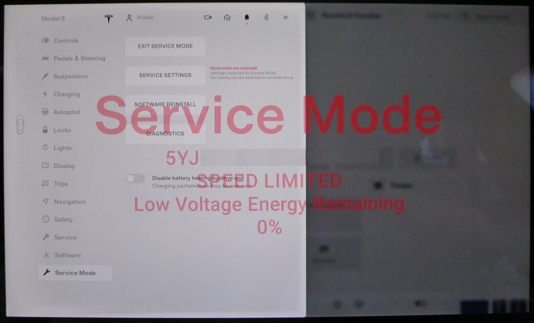 - Enable Service Mode through the vehicle touchscreen. See 维护模式(启用和禁用)