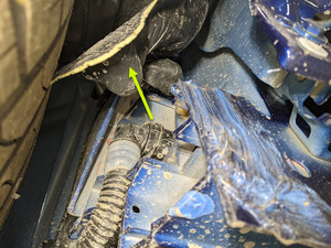 - Plaid vehicles only - Remove the foldable funnel and absorbent material from under the power conversion system coolant return hose.