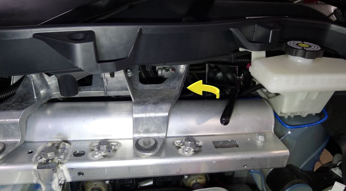 - Remove both the coolant container and fender cover from inside the underhood area.