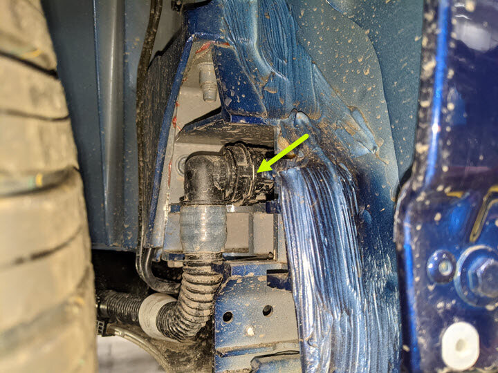 - Move the LH front wheel absorber aside to access the LH sill hose fitting.