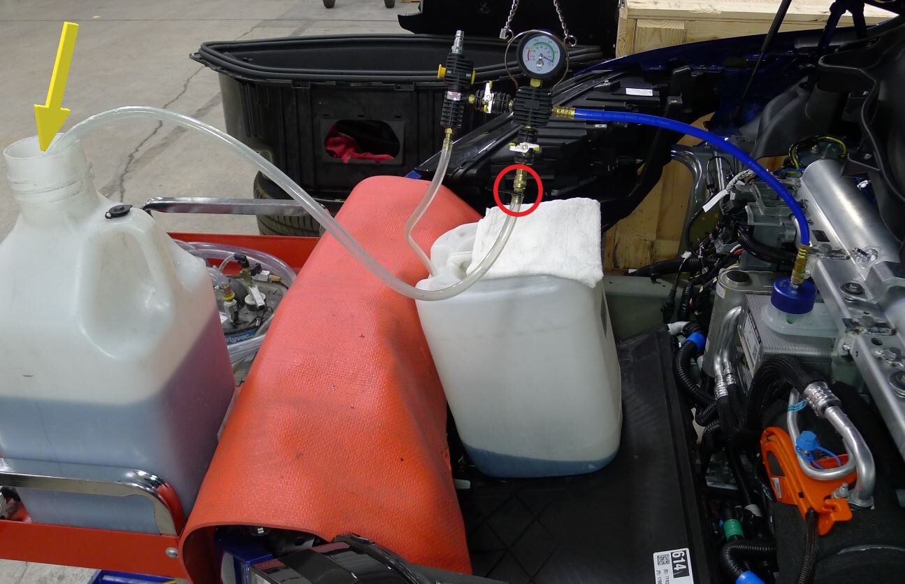 - Once the gauge reads zero, close the coolant refill valve.
