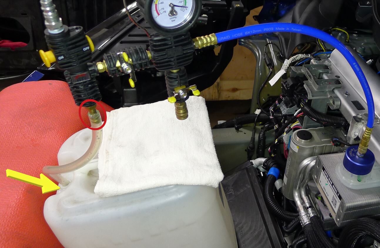 - Remove the vacuum refill hose from the refill cap on the coolant bottle.