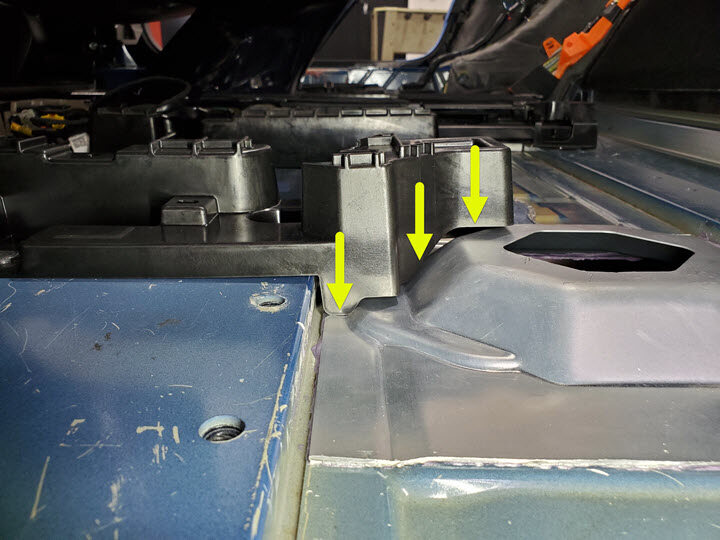 - Remove the RH 2nd row seat floor support.