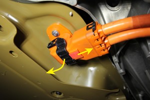 断开低压电池连接器和紧急响应回路 (FRL)。