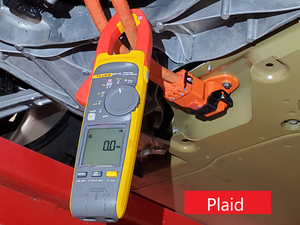 注在进行测量之前,确认仪表已调零;测量一根电缆。确认电流表安装方向正确。如果电流超过 0.5A,请勿继续断开高压连接器。在这种情况下,请再次启动车辆电气隔离,以确保所有电气设备均已正确关闭。如果电流小于 0.5A,则可以断开连接并检查电池侧高压插头处的电压。