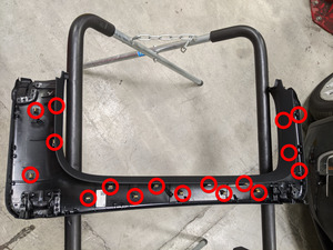 - 松开将左后门上部饰板连接到左后门的卡子(17 个),然后从车门上拆下该饰板。