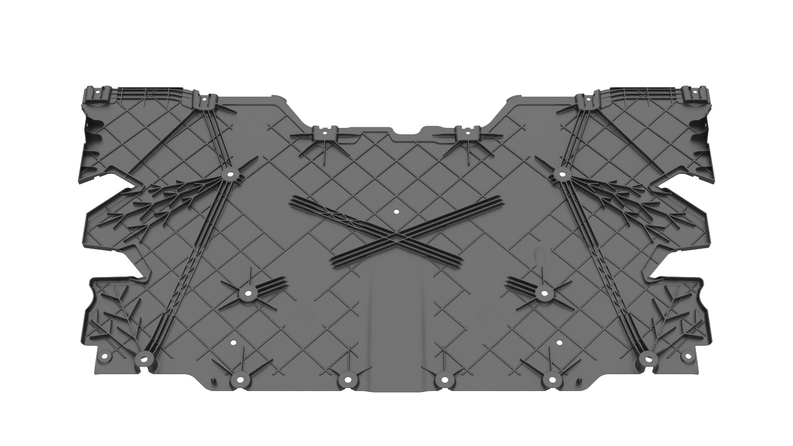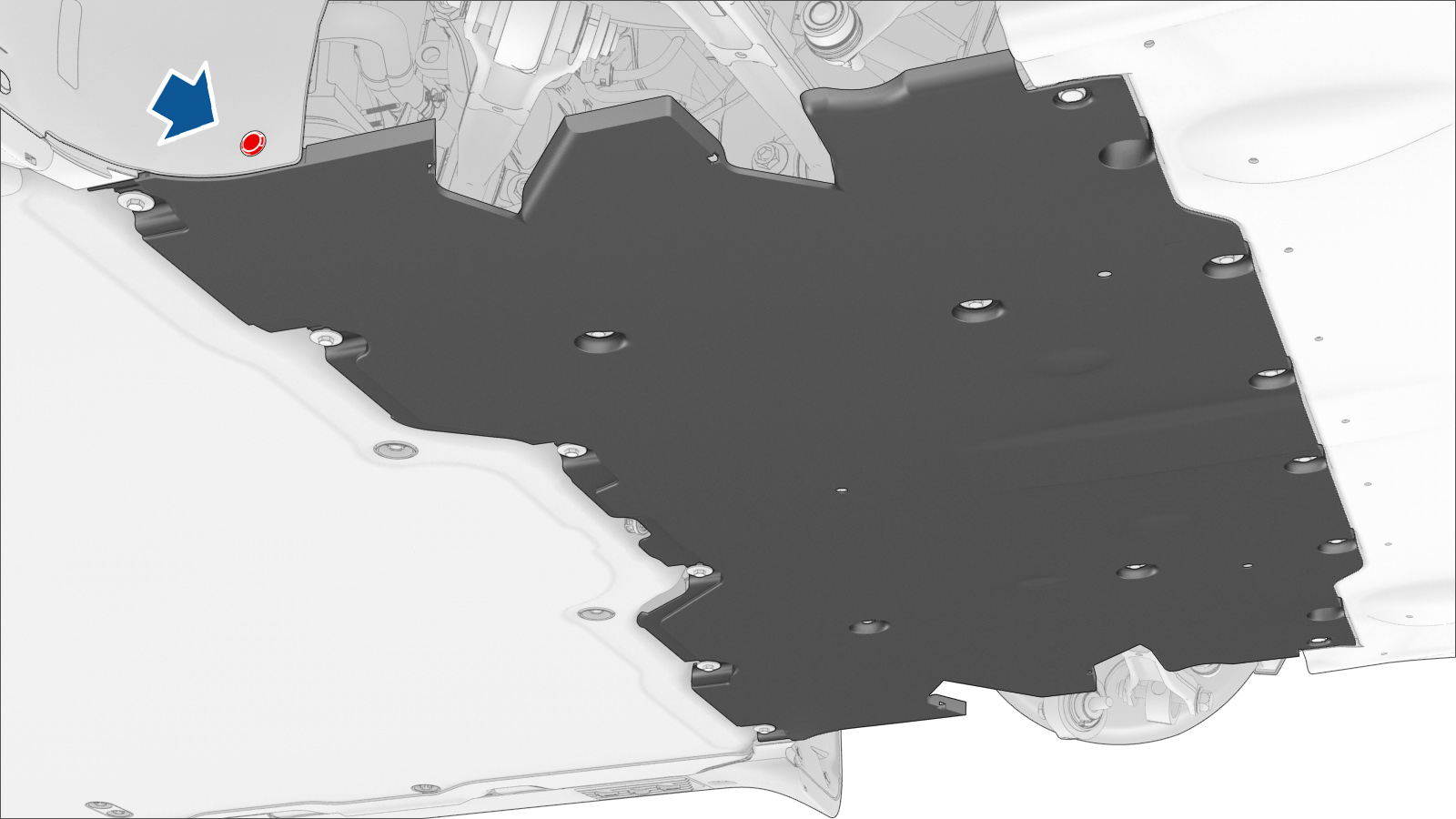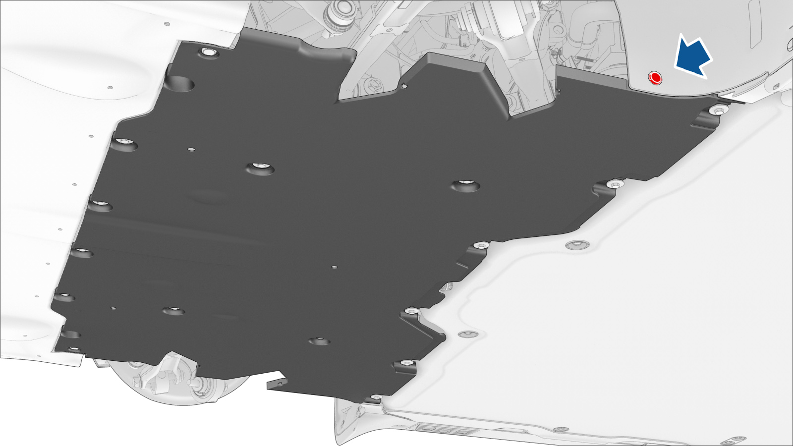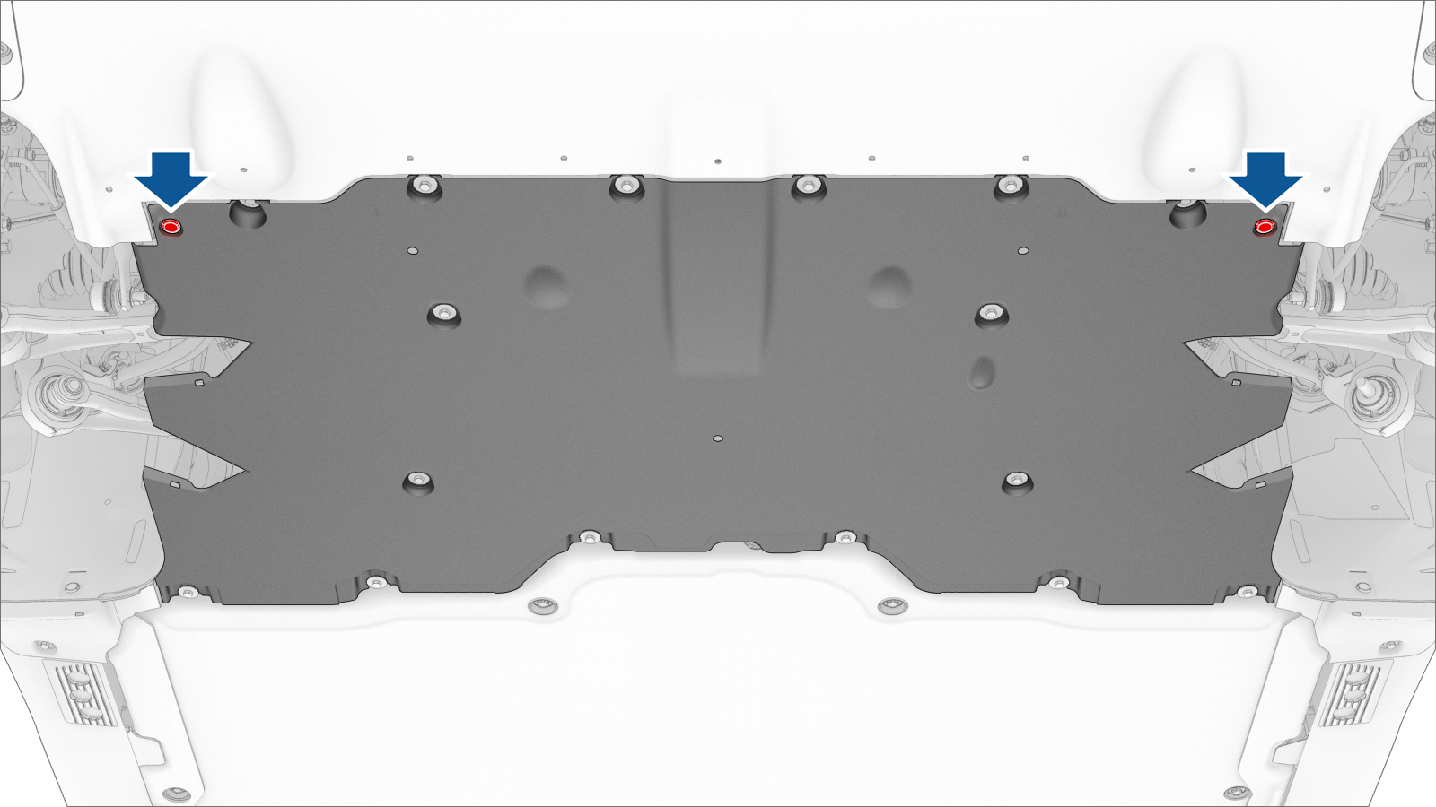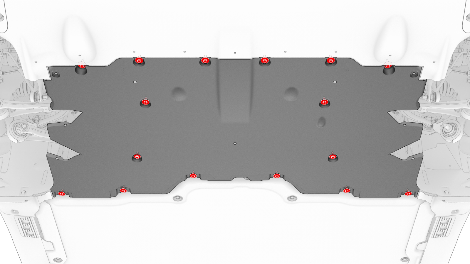 将中间流线型护板安装到后副框架上,然后安装将护板固定到副车架的螺栓(16 个)。