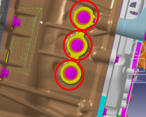 - 检查后驱动单元 (RDU) 左侧变速箱壳,确保没有间隙垫卡在此处。如果有,请取下间隙垫,用酒精湿巾清理该区域,然后等待风干至少一分钟。