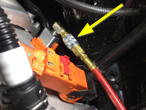- 将泄漏测试适配器安装到驱动单元逆变器高压接头中。