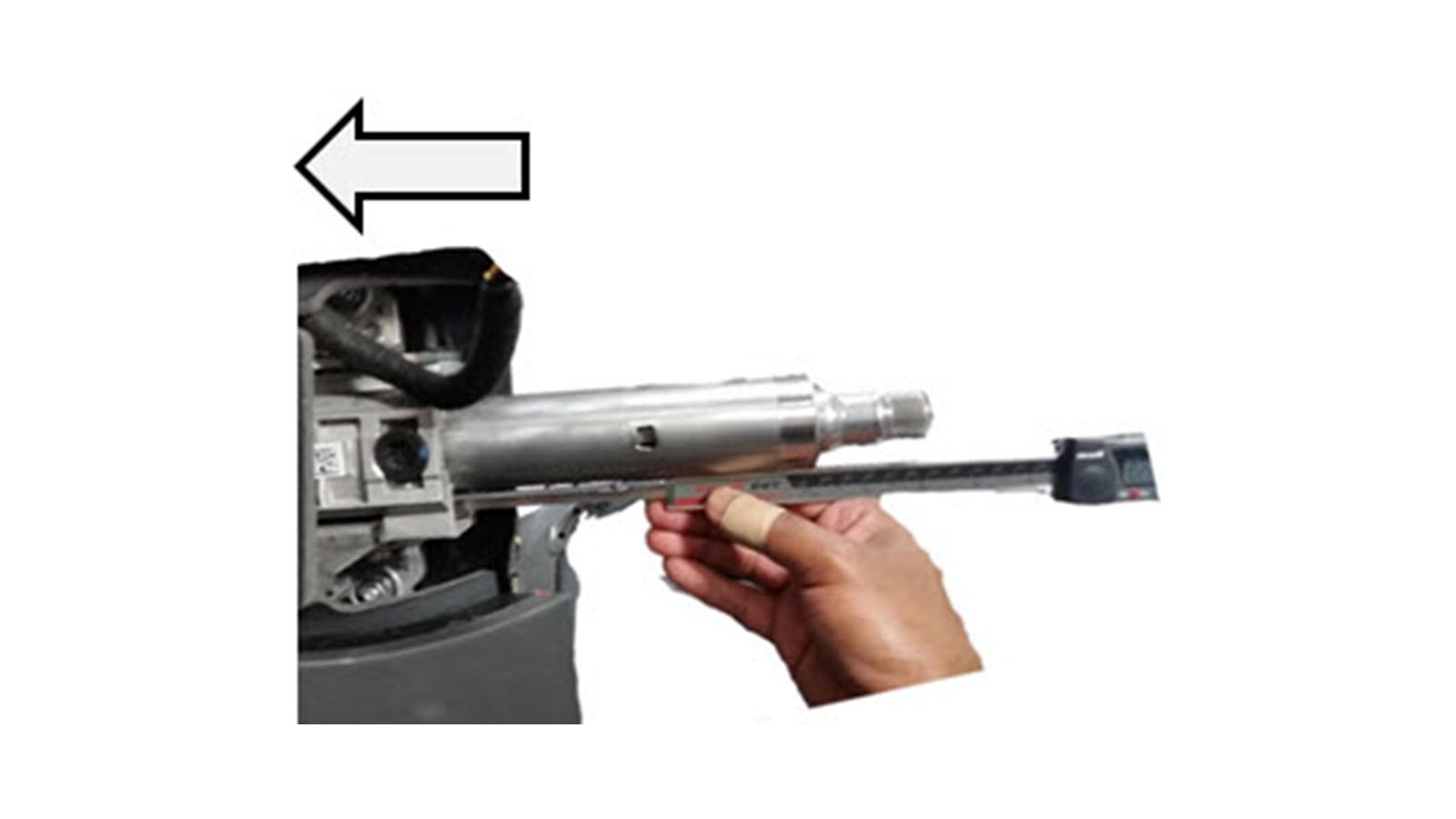 - 测量从转向柱外壳内侧到能量吸收带末端的距离。如果两点间距离小于 126 毫米,请更换转向柱。