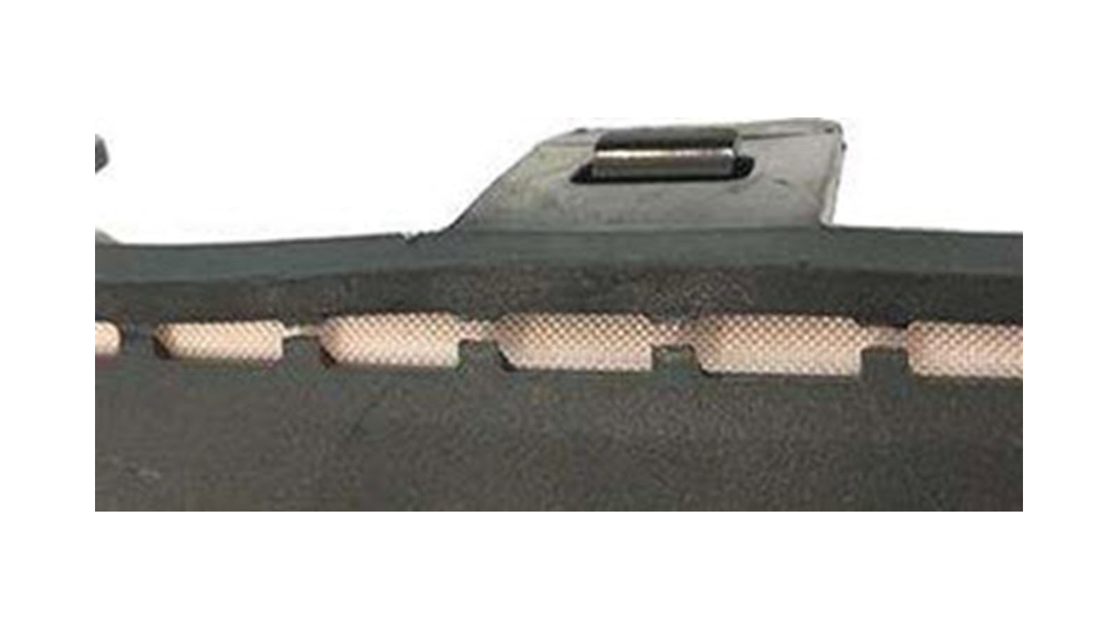 - 如果膝部气囊盖板已损坏,或如果连续断桥为 3 处或更多(如下所示),或者断桥总数为 5 或更多,请更换整个膝部气囊总成。