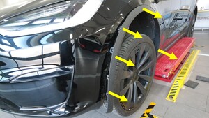 仅适用于 HW4 车辆:安装卡子(5 个)和锁片(10 个),将左前翼子板饰条安装到车辆上。