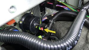 - 将线束紧固到超级歧管上,然后连接低压压力温度传感器连接器。