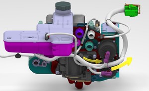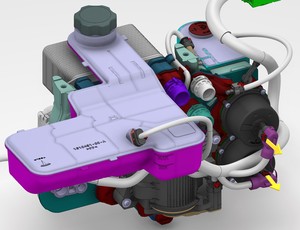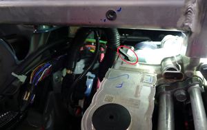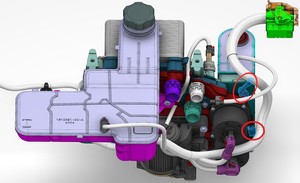- 将温控棒线束布设在动力总成冷却液泵和制冷器冷却液泵之间,然后紧固将温度系统线束固定到动力总成冷却液泵和制冷器冷却液泵的连接器(2 个)。