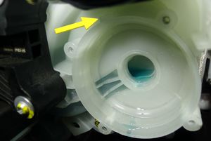 - 在前驱动单元上方以及超级歧管后部冷却液软管下方放置吸收性材料。
