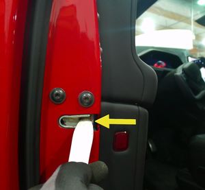 在制动踏板垫的安装槽上涂一层薄薄的 P-80 乳化液临时橡胶部件润滑剂,然后将一根电线插入制动踏板垫的顶部格栅。