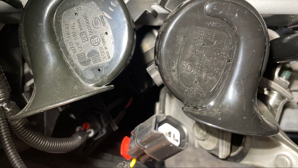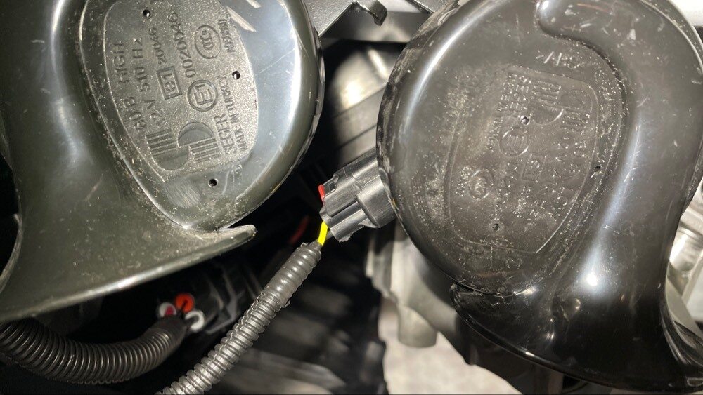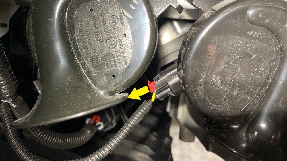 Remove the nut that attaches the horn assembly to the vehicle body, and then remove the horn assembly from the vehicle.