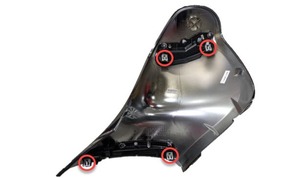 - 将第二排左侧座椅支柱内饰板放到车上,然后安装将饰板固定至车辆的卡子(4 个)