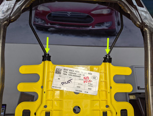 注一个线束用于座垫,另一个线束用于座椅靠背。上部支架用于辅助布线,下部卡子用于固定线束。