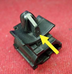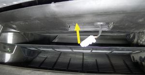 - 按下车外温度传感器上卡子的固定臂,然后向下拉动传感器,将其从车辆上拆下。
