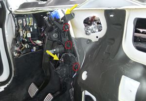 拆下将左侧膝部气囊总成固定到车辆的紧固件。