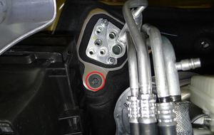 注确保压缩机和鼓风机都处于关闭状态,这样驾驶舱冷凝器内部的制冷剂才可以返回蓄压器