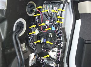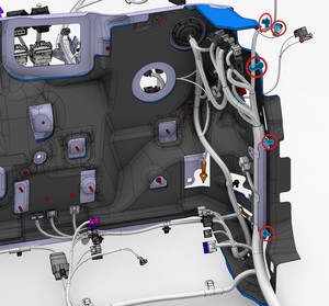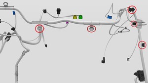 将诊断线束和 CAN 线束固定到仪表板维修面板上。