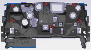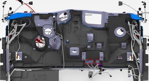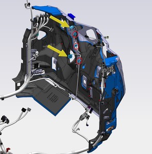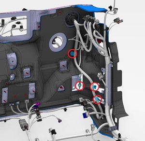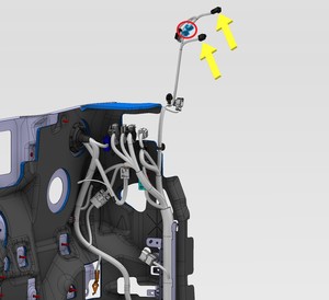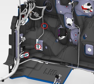 - 将显示屏线束布设在 LH 显示屏支架后方。