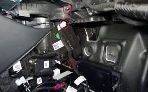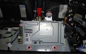 注3 个螺栓,10 mm,9 Nm,1 个连接器;将模块向前、向上旋转,以接触连接器。