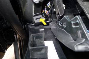 从右侧脚踏板面板上松开线束。