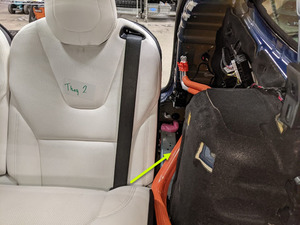 Install LH 2nd row monopost seat harness onto LH side mid floor common bracket