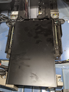 Remove screws securing 2nd row LH monopost seat sliding panel to seat base