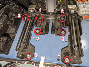 注7x bolts, 11mm, 33 Nm, Install new patch bolts, Follow torque sequence shown in image