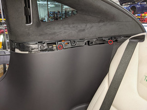 Remove fasteners securing LH upper C-pillar trim to bracket