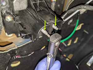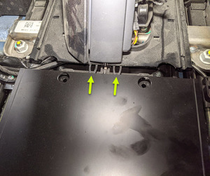 注2x connectors, Secure FRL first, Seat LV battery connection and push black connector lock inwards to secure, Engage upper locking tab when fully seated