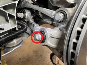 拆下将左侧后止推杆固定到转向节的螺栓。