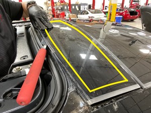 安装左侧鹰翼门上部玻璃
