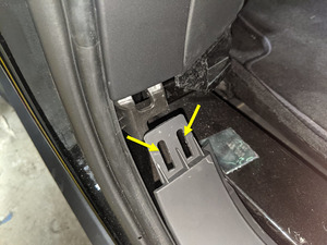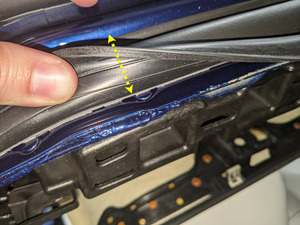 - 将左侧前车门密封件沿左侧 B柱饰板完全放置到位