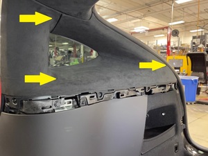 从车上拆下左侧 C 柱门框硬盖板