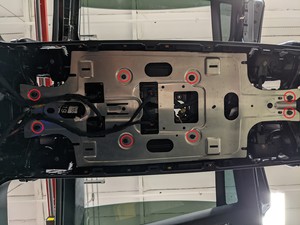 安装将左侧 B 柱门框硬盖板固定到中央脊柱门框硬盖板的紧固件