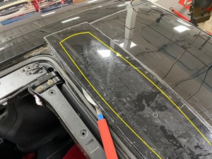 注按照聚氨酯路径在车顶和中央脊柱饰板支架上涂抹底漆
