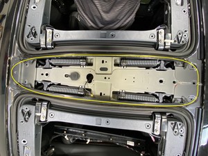 注建议请助手帮忙;将顶篷从头枕上翻越,并通过左侧或右侧鹰翼门开口拆下顶蓬