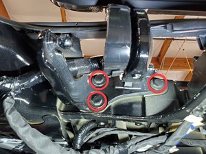 拆下将左侧底座支架固定到车身的内螺母(2 个)。