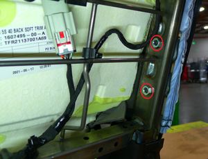 将 40 座椅靠背垫的下部固定到座椅骨架上
