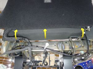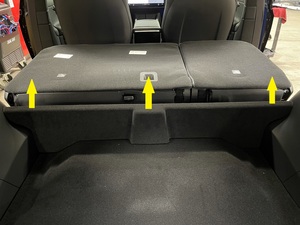注从前端开始,将毡毯提起放到鱼叉支架上,向后折叠直至可够到后排座椅部件