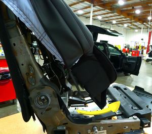 注2 个连接器,1 个卡子,侧气囊卡在靠背骨架上
