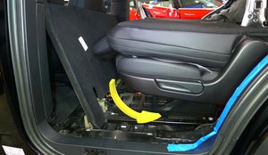 注将楔子插入第二排左侧座椅和第二排座椅外侧靠背倾角调节器中间时应小心