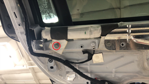 拆下用于将左后车门固定玻璃固定到车辆上的螺栓(5 个)。