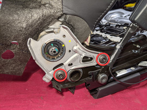 在助手的帮助下,拆下并弃用将驾驶位座椅靠背总成固定到座垫框架的螺栓 (x4)。