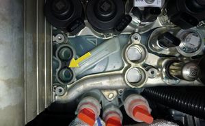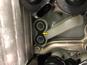 注稍微松开冷却器右侧,排出多余的冷却液,冷却液排放期间,保持与超级歧管连接的空调端口完好,以避免交叉污染。